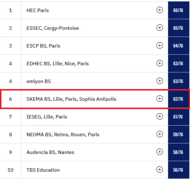 In January 2023, I felt euphoria when I came to know that 'Skema Business School' is recognized and ranked '6th TOP Business School' (62/76) in France! ✌